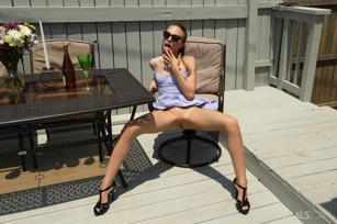 Allie Asia in Teen Dreams set Allie Asia On The Patio In Blue Bikini