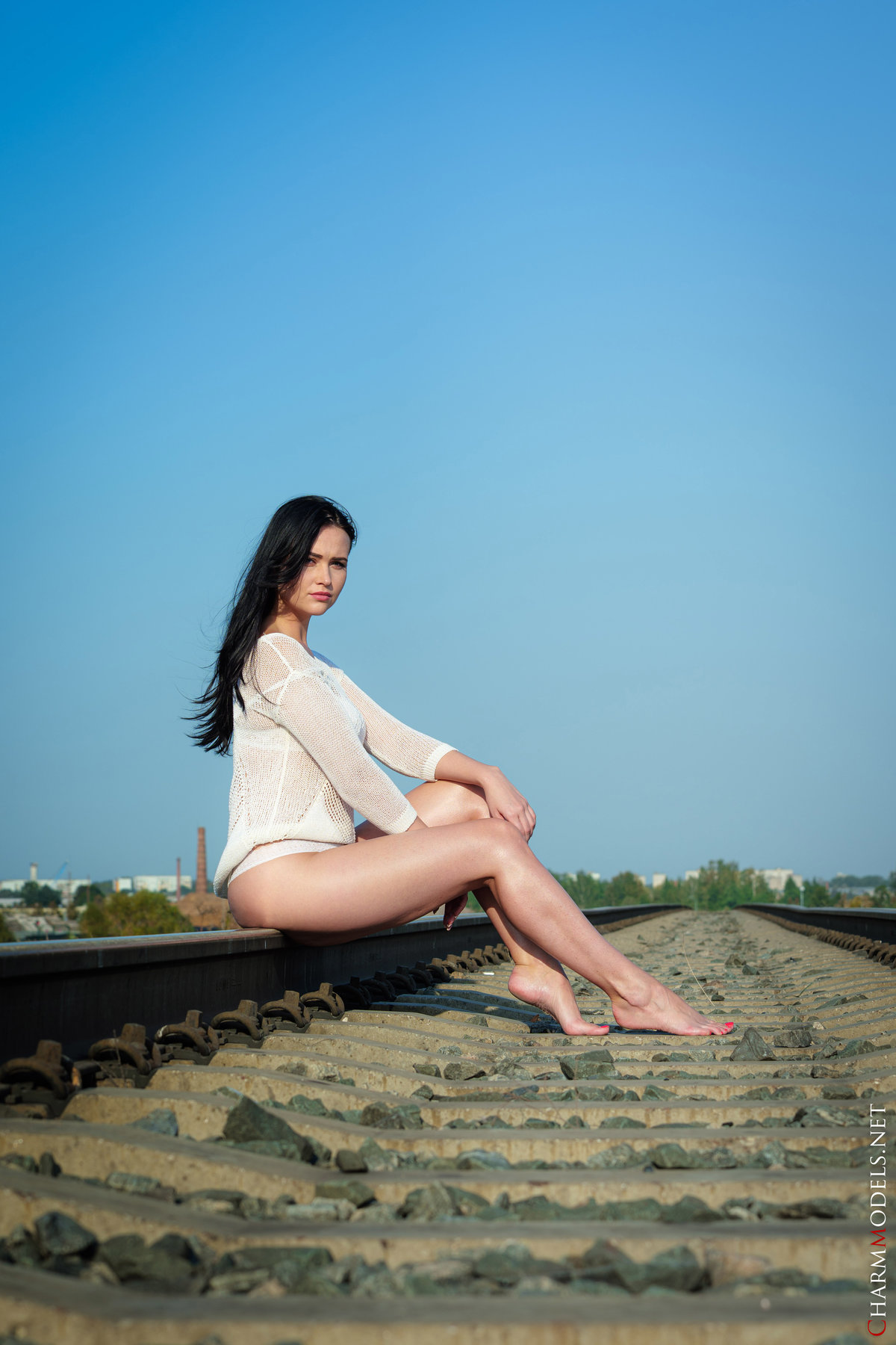 Gabby Bella in Charm Models set Supermodel In White Panties At Rails